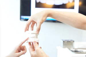 部分的に負荷が掛かりすぎないように、ミクロン単位での咬み合わせ調整を徹底して行います。