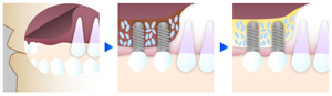 当院では、患者様の口内条件などが揃った場合に、「抜歯即時負荷法」と呼ばれる術式で、