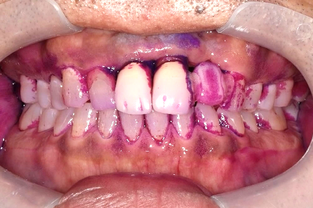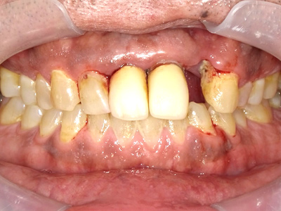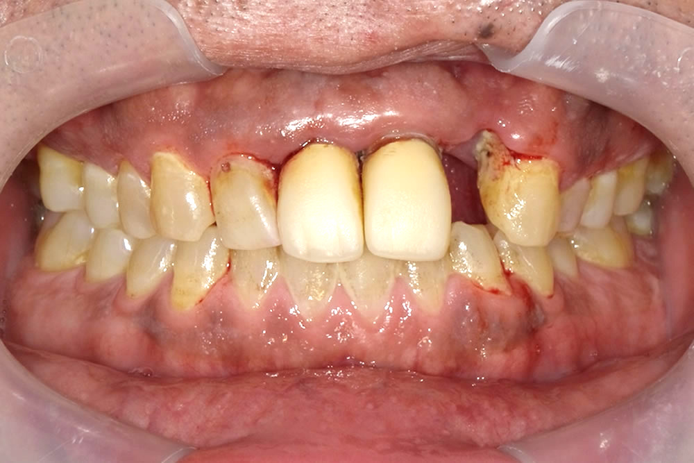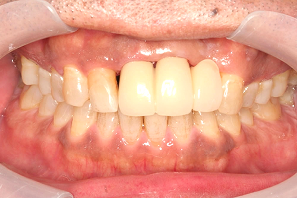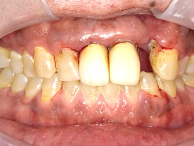 そのため、欠損部の咬み合わせを回復する前に歯周病治療を行い、口腔内の環境を改善する治療計画を立てました。