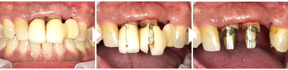 治療の方針が決まったので、従来の被せ物を丁寧に取り外し、