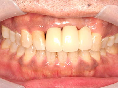 口腔内環境が改善されたため、前歯の治療に移行します。
